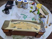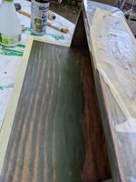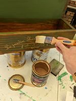 Stained EVERYWHERE - including the paint - the WHOLE PLANTER! Even its little feet!At this point, I’m happy with the level of texture I have but I want a deeper stain to the wood