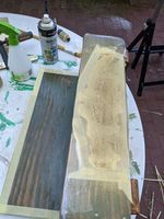 Out of Ebony - so went to Bunnings and got more - Mum chose (Sikkens) Dark Oak #9, which being a lighter colour will help to accentuate the depth of the Ebony I'd already applied.