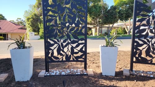 Last idea for plants, from your driveway, go low, medium plants then panels and the low all the way to the footpath. It may take a little to re-establish but I think it wiull work with the panels you have installed.