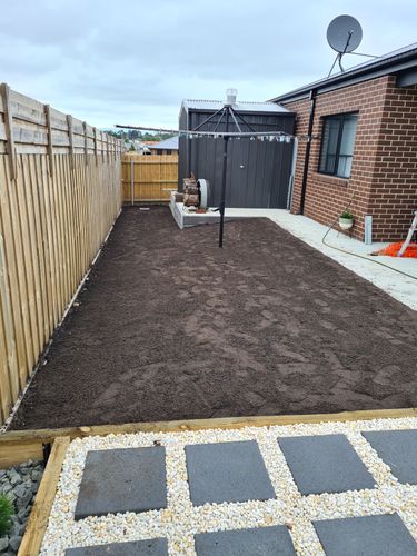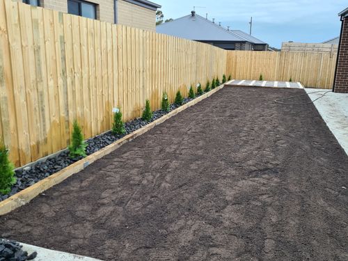 We let it sit like this for approximately 4 weeks to allow the top soil to settle and we brought a few more metres of top soil to rectify the high lows that came from the previous Topsoil settling at different rates.