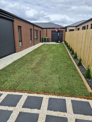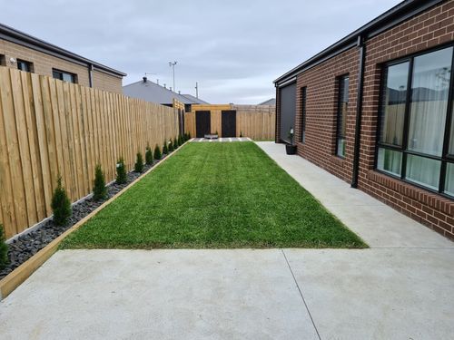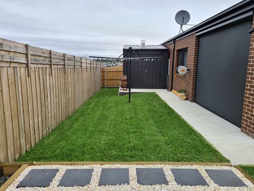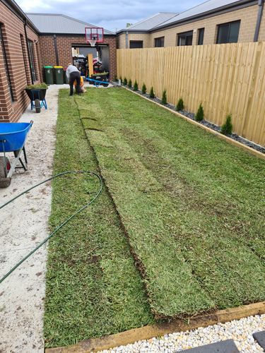 We got our 120 sq mtrs of Sir Walter delivered early December, and it was a long day laying it all.