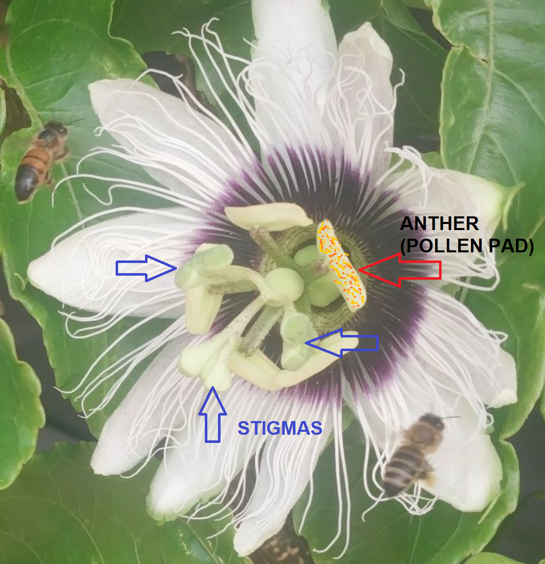 It's important to use the pollen from the anther and transfer it directly to the stigma of another flower. I've added an image below. It's best to apply the pollen to all three of the stigmas.