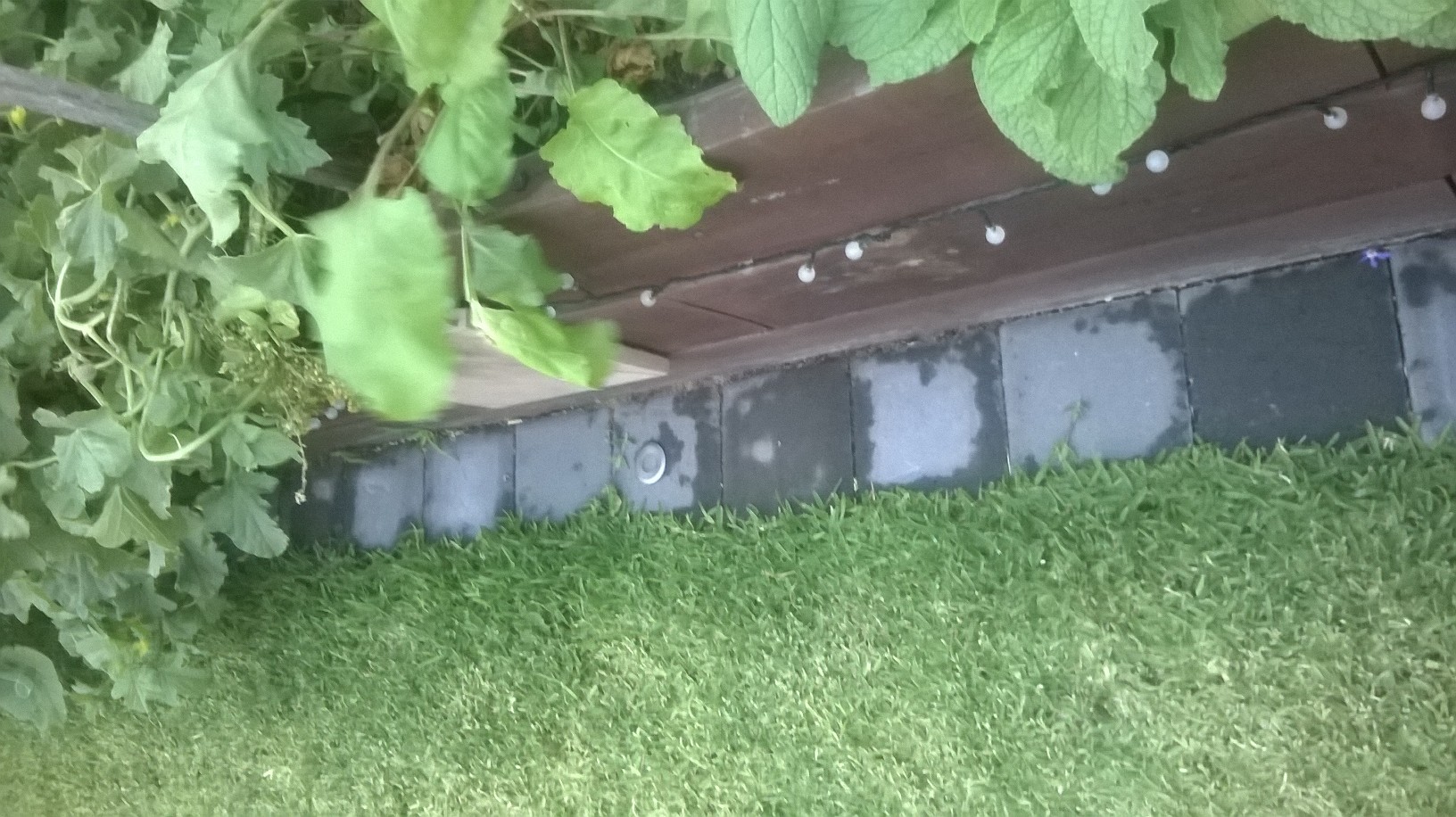With our beds I wasn't happy with snipping against the wood so I put down a single layer of pavers against the bed.  This serves 2 purposes of preserving the timber of the beds but also assists the mower.  I also put in some 12v uplights and this gives the garden some nice ambience at night.