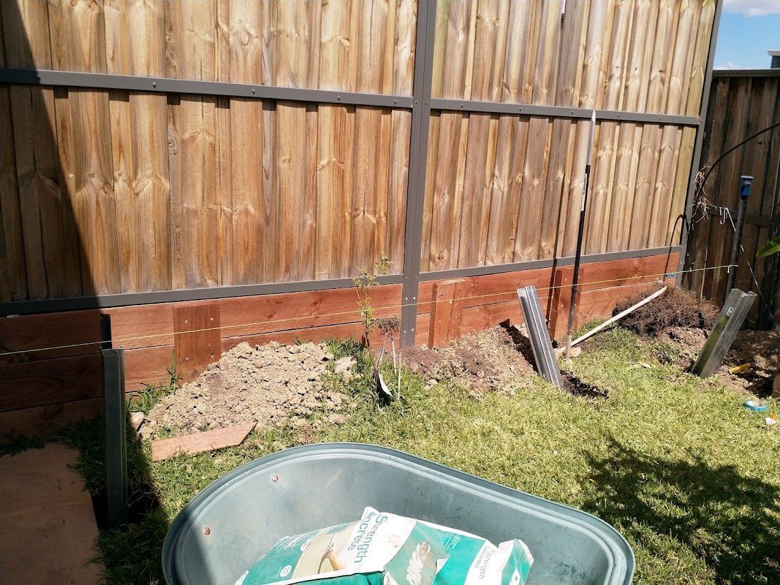 I’ve done a One sleeper garden bed before where I’ve used sleepers in concrete as posts. However, I have found using retain it posts to be much easier!!! Smaller holes to dig, lesser numbers of holes as well.