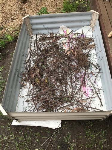 Great thinking with the sticks and leaves! I wish I had gone that route myself as after just filling a 750 Litre bed I probably could have saved myself some money.