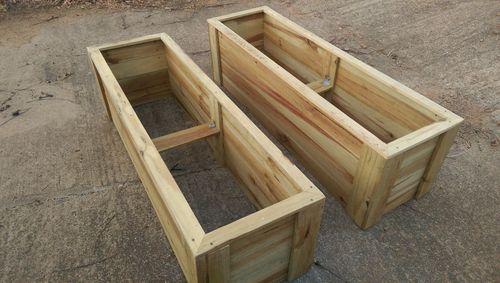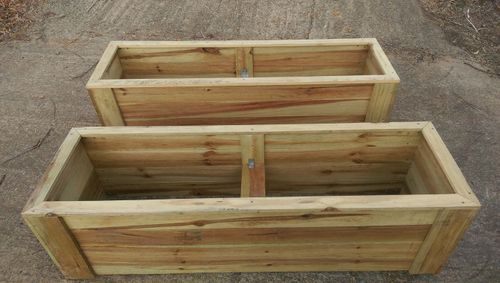 Raised veggie gardens made from Bunnings fence palings. I put a flat bordered edge around the top and left them bottomless so the worms can come up into the soil.