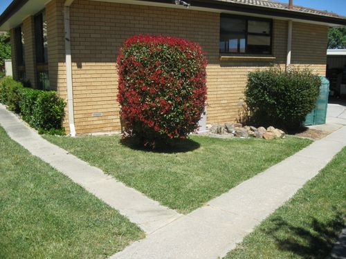 We also have several untamed photinias out the front along the boundary which are probably the dimensions you mentioned. We do have plans to tame or terminate them but first things first. In a small area between the house and the driveway we have a single photinia bush about 7ft high (pictured) which is soon going to be pulled out along with the grass with the intention of making that small area into a rockery with a rainbow of perennial flowers and ground covers (I have just purchased 22 different seeds). I have already obtained some free rocks through Gumtree but will be needing quite a few more. We also have to come up with a solution to hide the ugly ducted heating unit against the brick wall but something that will still allow access to it. We have to keep any rocks away from the driveway and will probably put some tanbark along it. This is because some visitors have trouble backing their car out of our driveway. We also need to keep it clear so that our boat can easily be backed into the carport. I also thought that some sort of metal or timber installation on the brickwork would perhaps break up the monotony of the brick wall which is north facing. Any suggestions from Workshoppers would be welcomed. This project will hopefully be done in the New Year.