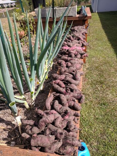 13kg of Sweet Potatoes in our first season. Only 5kg in the second because of the drought.