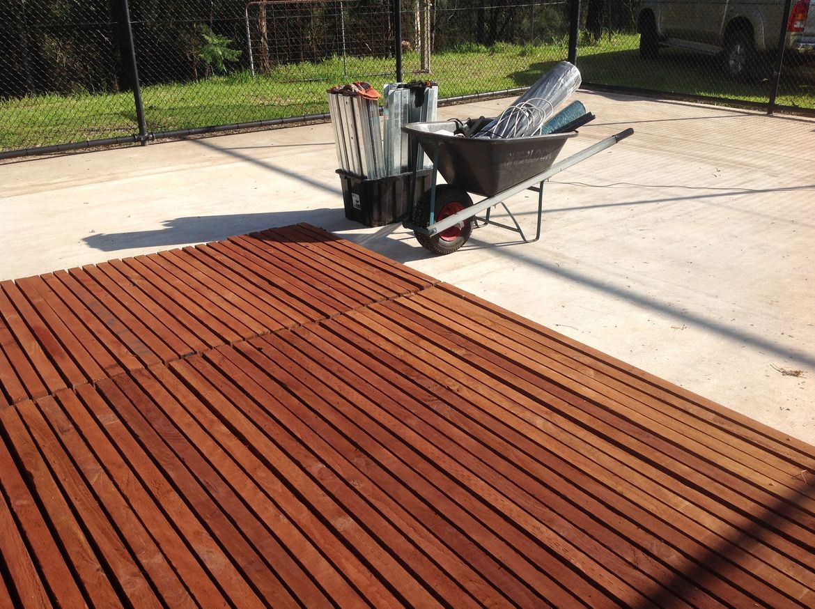 I thought long and hard about drainage and in the end excess water just leaks out of the bottom between the Eco deck and the concrete base. So the timber doesn't touch the soil and doesn't get wet feet.
