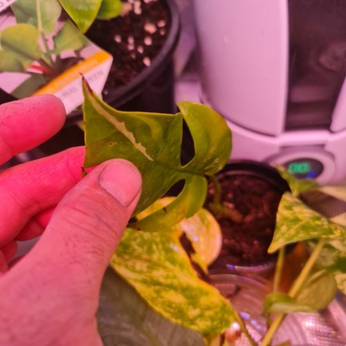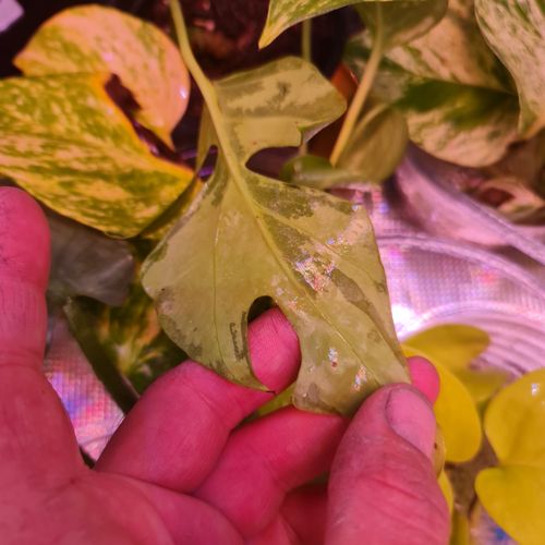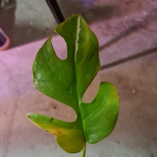 I had it in the grow tent since then I have taken it out due to it getting sunburnt a bit. But here is the plant and leaf. It had a few leaves with smaller variegation which I'm trying to propagate aswell but this had the most so I cut it back to the node to encourage it to variegate more from here. So @MitchellMc what's your prognosis.