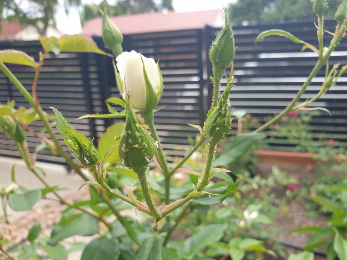 If left unchecked, aphids can cause quite severe distortion of rose blooms due to the way they feed. Control/eradication is recommended as soon as they are noticed.