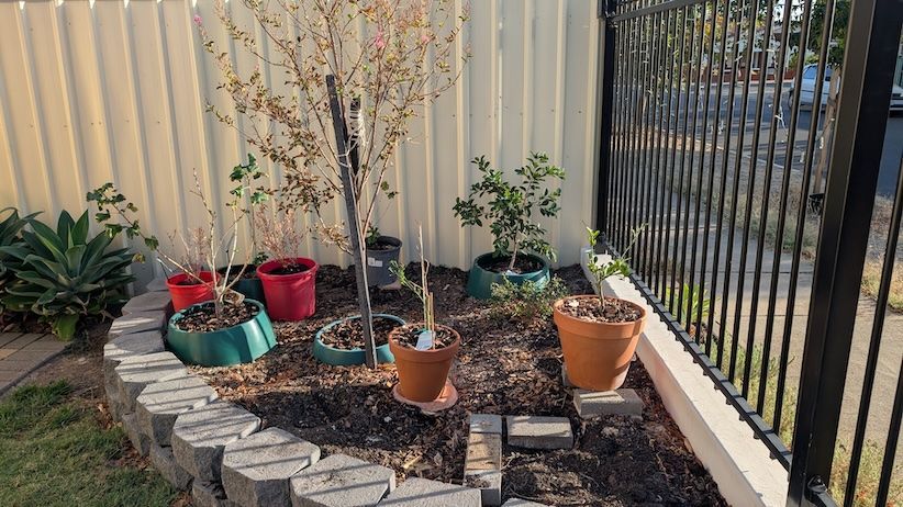 I have a small garden bed to the south of a south wall, so morning sun and very late afternoon summer sun, and the summer sun is nearly overhead but it is shaded most of winter, I have a small myrtle nearby etc, was looking at planting a small and slim tree / shrub (to left) that doesn't mind nearly all shade while growing but can handle midday Adelaide summer sun if it reaches past 1.7 metres high. It needs to be narrow. So was wondering if a paradise (slim) camelia was an option? I could probably only dig down 30cm if I need to change the soil (Adelaide plains clay another 20-30cm down). It would replace the blackberry in the far left. The myrtle is in the middle and a guava (that catches morning sun) to the right. The others are mostly temporary.