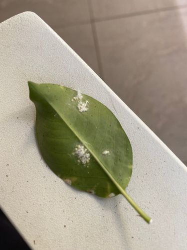 Looks like woolly aphid or mealy bug to me. Either way an application of pyrethrum insecticide or a horticultural oil like white oil or Eco oil applied according to label directions and with particular attention to the back of the leaves should fix the problem. Check every 7-10 days for further incursions and reapply if required.