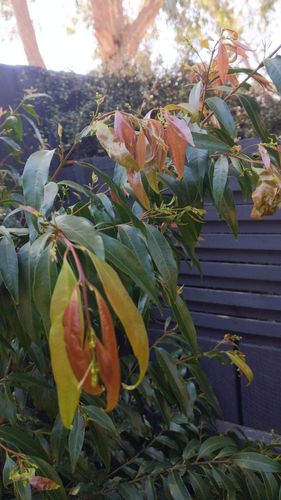 Hello! First timer using this and first time tree caretaker. We planted our weeping lilly pilly in may this year. Our soil is clay, but we planted with a fresh soil mixed in. We also added mulch and fertilizer to the top. Over the last month the new growth has been changing colour to a reddish brown. Any suggestions??