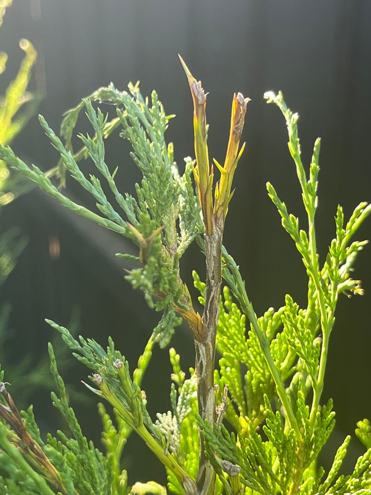 We have just had 12 pencil pines planted in our side garden bed (see photo). Unfortunately during the planting some of pine's tops/crowns were injured/cut (see photo). We are wondering if this will limit the growth of these pines as we definitely need them to grow several meters tall