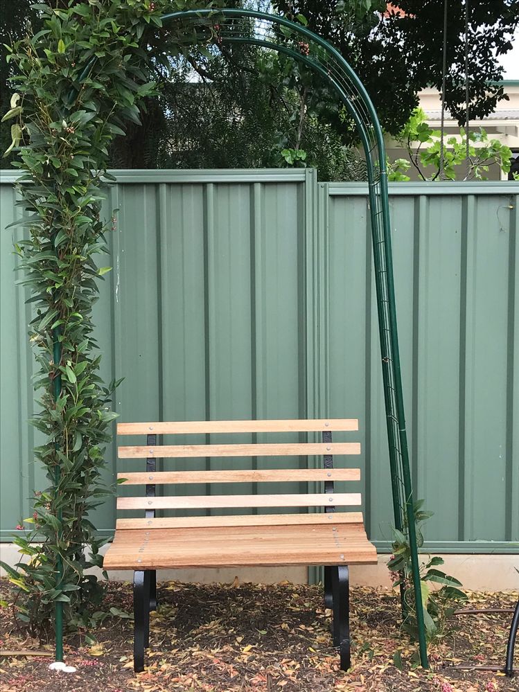 I removed all the timbers, painted the cast iron legs with Metal shield and then replaced the timber slats with DAR Tasmanian oak. Three coats of marine varnish to finish and this bench is ready for many years to come!