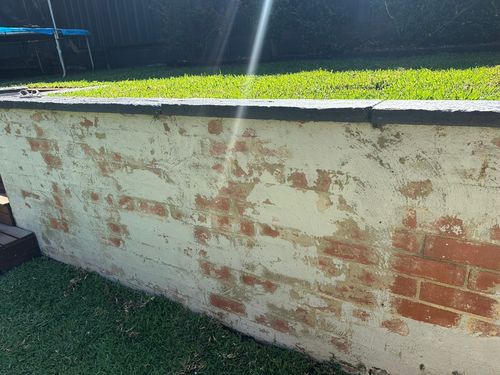 This brick retaining wall was bagged a few years ago. Over time, the render has gone flaky and started peeling off in places. I want to re-bag the wal ...