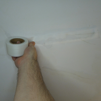 Apply self-adhesive reinforcement tape to areas where the plasterboard is cracked.