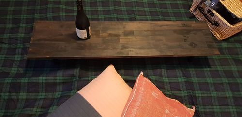 I sealed the wood with Gilly's wax and screwed on 4 x 150mm x 30mm adored round adjustable legs which were $3.80 each and came with screws. I used washers as the screws that came with the legs were 20mm and I didn't want them coming out the other side of the panel.