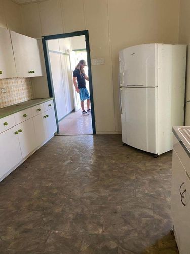 We replaced the floor before starting the cabinetry as we were doing the whole area anyway (Bunnings - Bellazza Crema $21.49 per box).