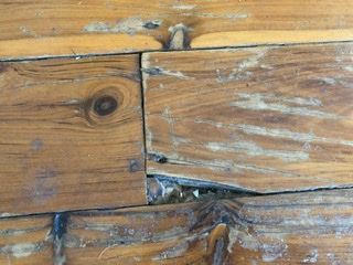 Your goal before sanding the surface of the floor is to make sure that every nail head has been driven back down and that the sanding machine will not catch on any errant nail head. All the cracks, holes and splits must be filled in before you begin sanding the surface. This will reduce the amount of repair time you'll need to spend on your flooring.