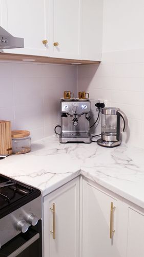 What an exceptional project @diy_hausdesigns! I love the benchtops you've gone with, and the gold handles add some delightful pizzazz. Those cabinets have come up spectacularly well; the trim also looks fantastic.