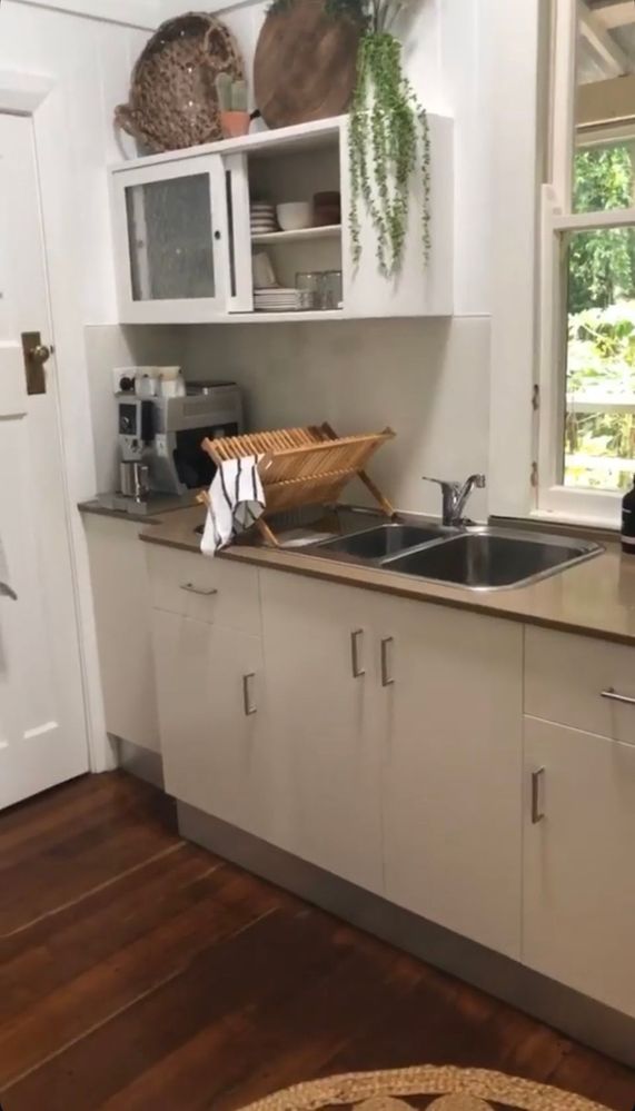 This kitchen upgrade is a wonderful example of how thoughtful DIY work can breathe new life into a space. The fresh coat of paint on the cabinetry brings a rich, earthy tone that pairs beautifully with the timber flooring and neutral accents. The updated handles and styling choices add a refined touch, while maintaining a welcoming, lived-in feel. It’s a skillfully executed refresh that showcases both creativity and care, proof that great results don’t always require a full renovation.