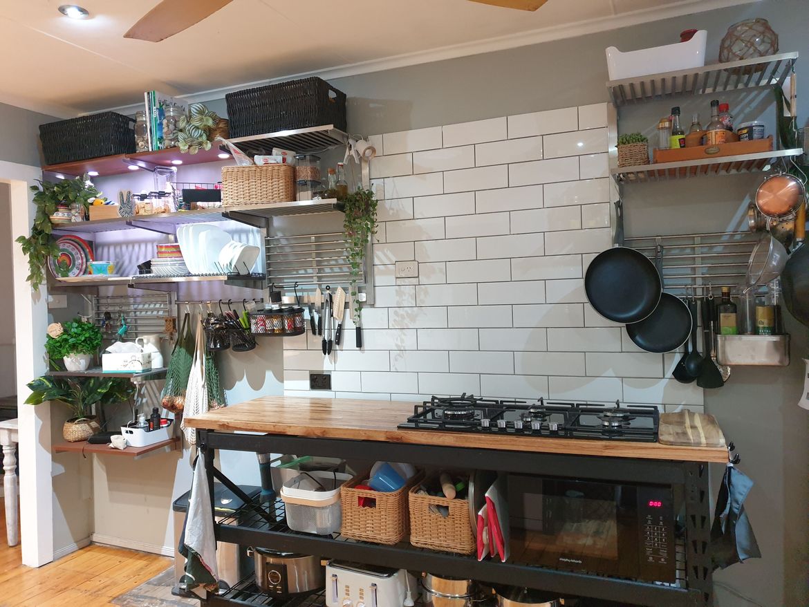 Everything you see in my amazing kitchen was painted , stained , erected , drilled , screwed , fitted and tiled by ME ( with the occasional side help with lifting ) and yes there were lots of mistakes and errors but with the help and advice from the Bunning's staff and mainly their ' How to do ' videos I have achieved my vision on a budget and I'm sure by now I should have shares in the Bunning's company LOL.