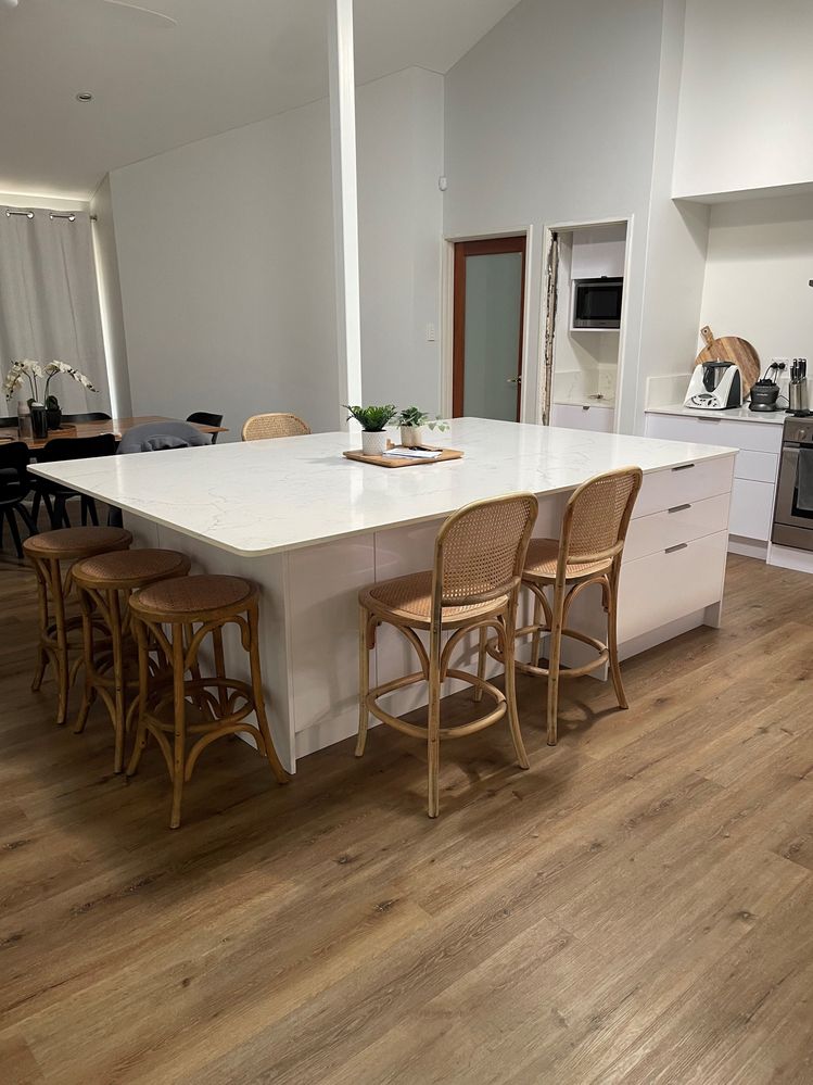 Our aim was to have the family dining at the island and adjoining dining area. The original design was a small footprint and we basically designed the kitchen to take over the room and have multiple people in the kitchen at one time, plenty of room.