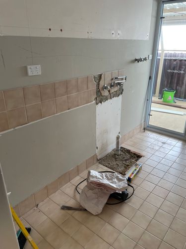 engage plumber to first fix kitchen and electrician to first fix electrics