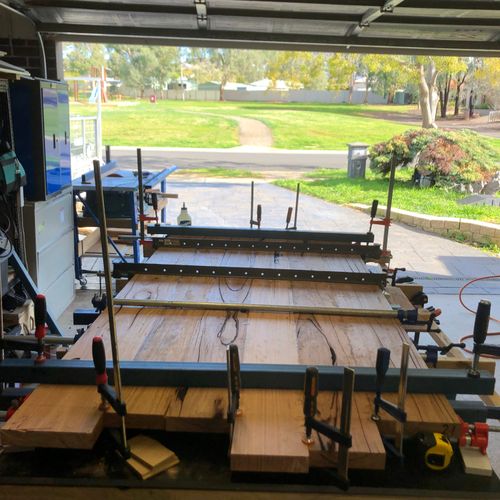 Did you use biscuits or dowels to hold the slabs together, and what type of finish coating did you put on it? Run into any issues along the way?