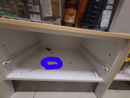 So, the water is trapped underneath the shelf, and we've removed the drawer and all the screws, but we still can't pull the shelf out.