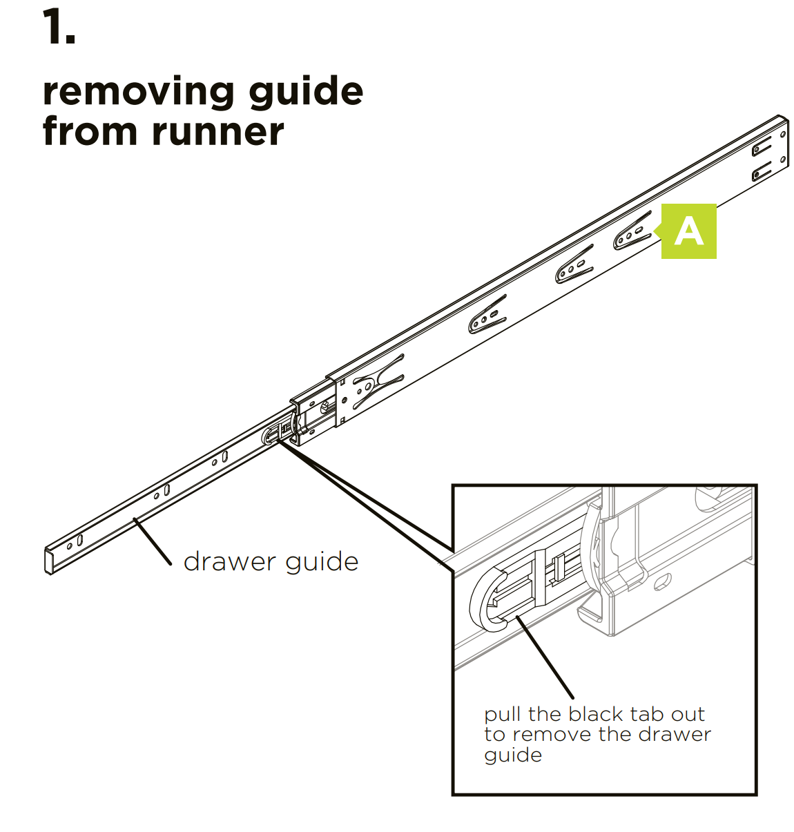 Alternatively, does that little black tab at the end of the runner come out like described in the example from the Kaboodle Soft Close Drawer Runners guide?
