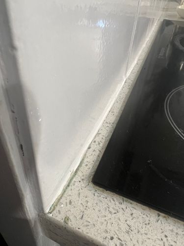 I have painted my kitchen splash back tiles white now I need to neaten up the edge where it joins the bench top. Any suggestions?