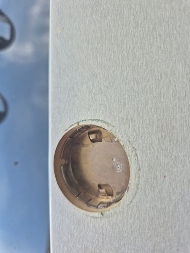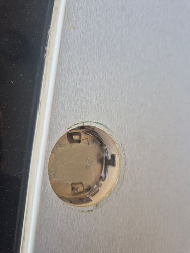 I've taken the cupboard door off the replace the faulty hinge. Once I took the hinge off left in there is this metal plate that is fairly fixed in there. Anyone seen this before? I can't get the new hinge insert in there while it's in there.