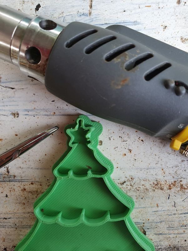 Our dog got hold of my wife's Christmas tree cookie cutter and chewed the top star.
