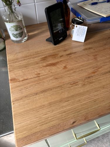 I recently installed some Tasmanian Oak benchtops in the kitchen. Prior to installing them I cut them down, sanded them and treated them with 3 coats of Cabot’s Benchtop Clear. They’ve been in for 2 months and we’ve noticed that they are staining through the treatment when they get oil on them. I’ve contacted Cabot’s but they couldn’t help.