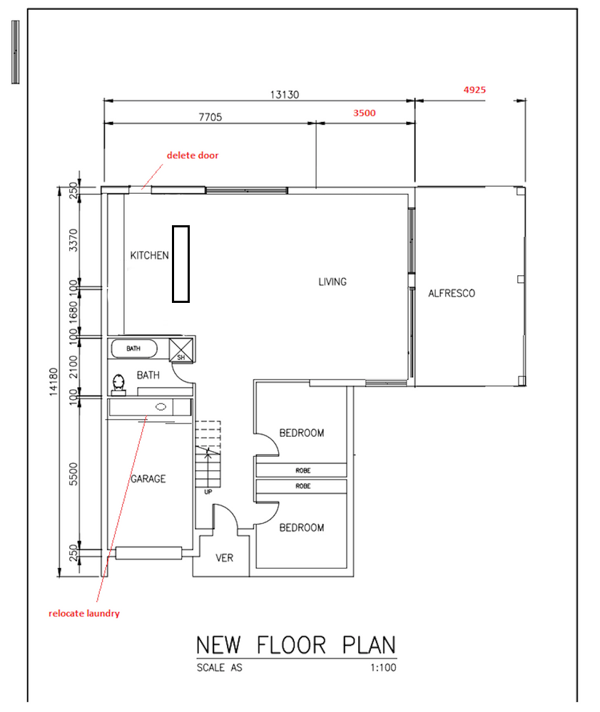 This is what our builder has proposed, the living and dining space is being pushed out by 3.5m and the laundry is moving to the garage.