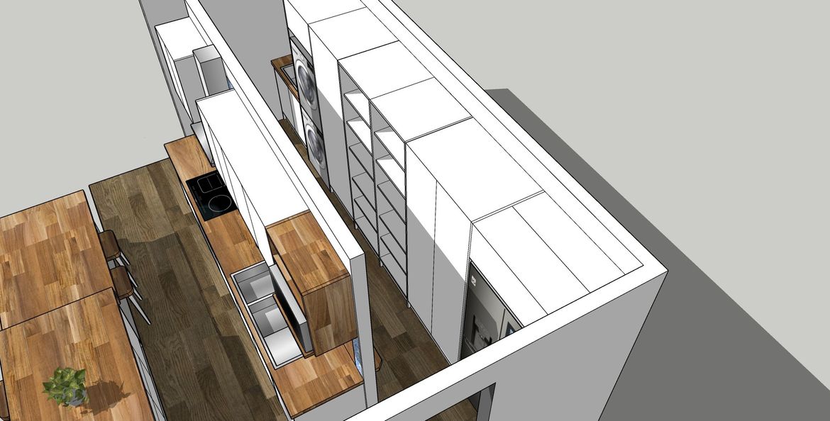 • Join the remaining laundry space into the kitchen as per remarkable & Eric