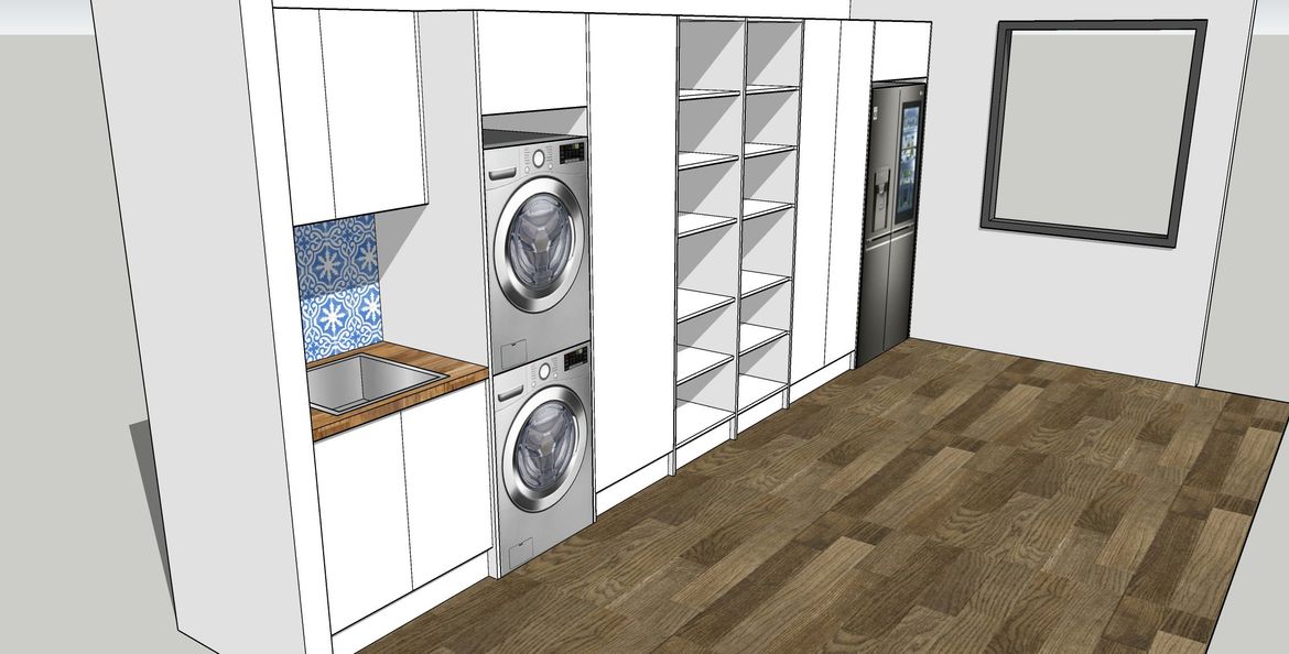 • Use Eric's suggestion for the laundry/pantry behind the cooktop etc