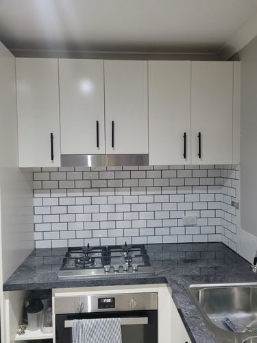 Thank you very much for sharing photos of your kitchen revamp. You must be very happy with the results. The new benchtop and the newly painted doors have really transformed the entire look of the kitchen. The light colour of the cabinets has made it look like a much bigger kitchen. The benchtop gives a nice contrast to the white colour of the cabinets.