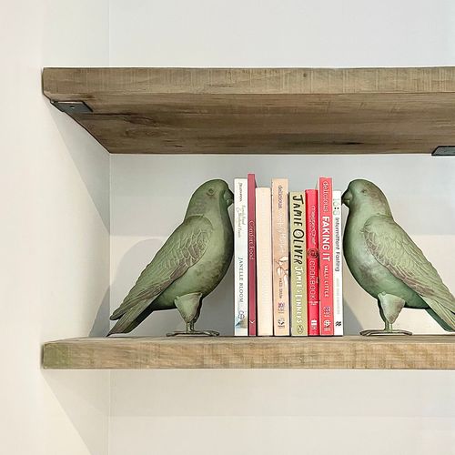 I love the paint makeover, they look like traditionally finished ornaments. They look so much better than the loud-coloured finish they use to have. It blends in so well with the books and timber shelves.