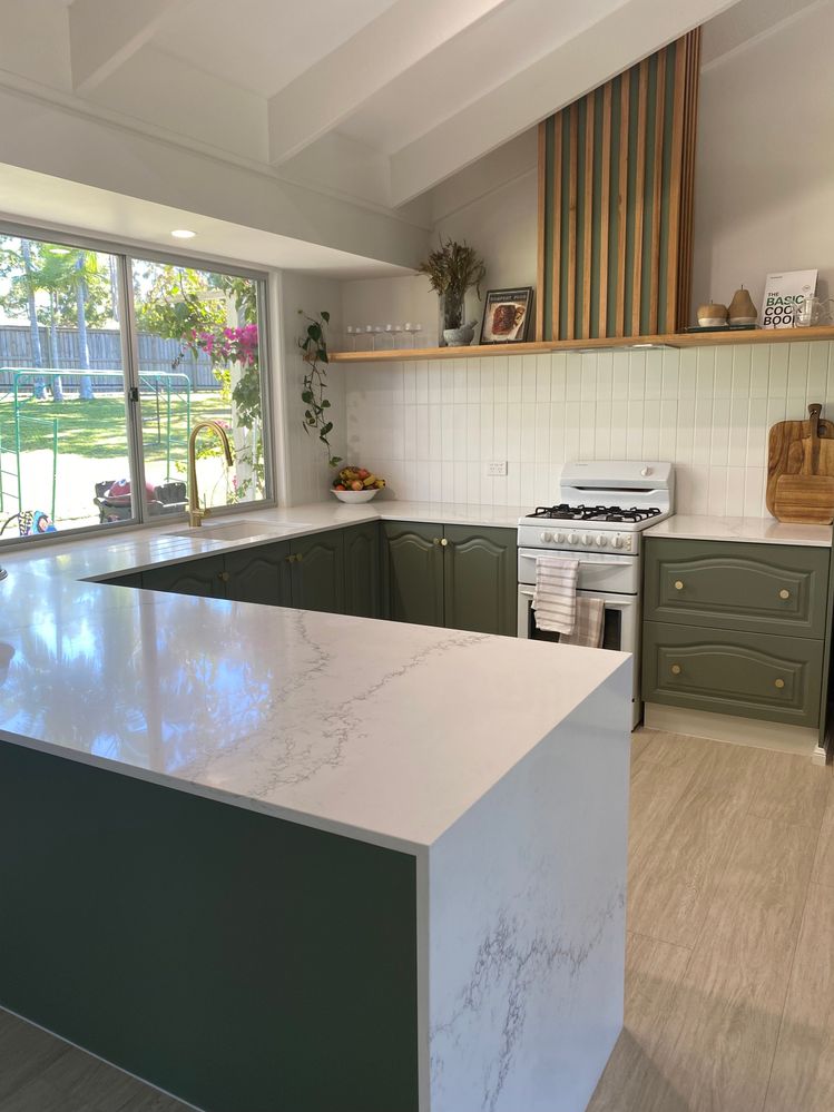 The new benchtop along with the new flooring tie it all together and makes the kitchen look bigger than it actually is. A very nicely done make over that will add years to the service life of the kitchen.