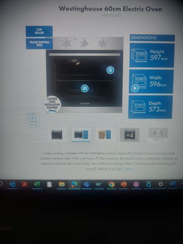 The measurements you see about the Westinghouse 60cm Electric Oven WVE6314SD include the front panel of the oven. The installed section of the oven that fits inside the cabinet are actually smaller. If I have identified your oven correctly, the size it will need will be 565mm (w) x 590mm (h) x 560mm (d). The Kaboodle oven cabinet has an interior size of 568mm (w) x 688mm (h) x 560mm (d). From an installation point of view the oven will fit inside the oven cabinet.