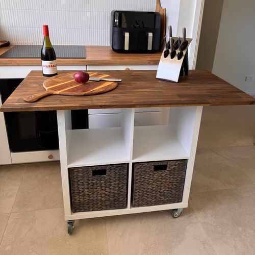 We needed more kitchen space to cook together without getting on top Of each other. After researching, we decided a mobile kitchen island on wheels (i ...