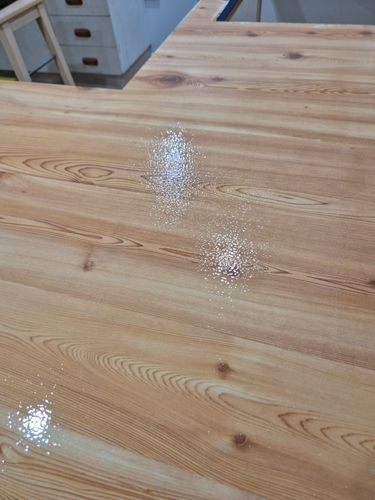 Have made a wooden table, sealed and prepared it according to instructions, pored Feast Watson glass finish. First coat we had lots of bubbles, burst ...