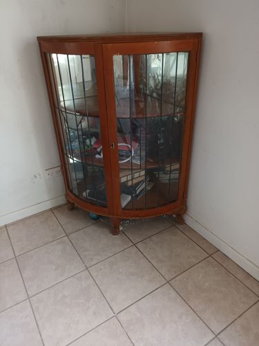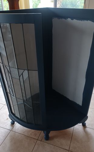 Over time the ply peeled and a couple of leadlight panels broke, dust filled the cabinet which was now an eyesore.
