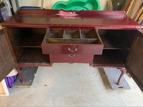 This c1940’s sideboard was in desperate need of a renovation. It was so damaged and worn, with the veneer peeling off in parts.