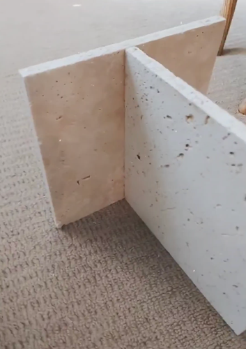 The shape of the letter T is my table's leg. Add glue to the top edge of the tiles. Place the bigger Travertine tile on top. Let it dry completely.