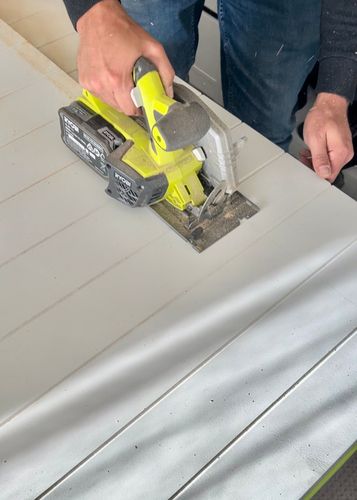 First we measured the wall and cut the easycraft craft panels to size with the circular saw.